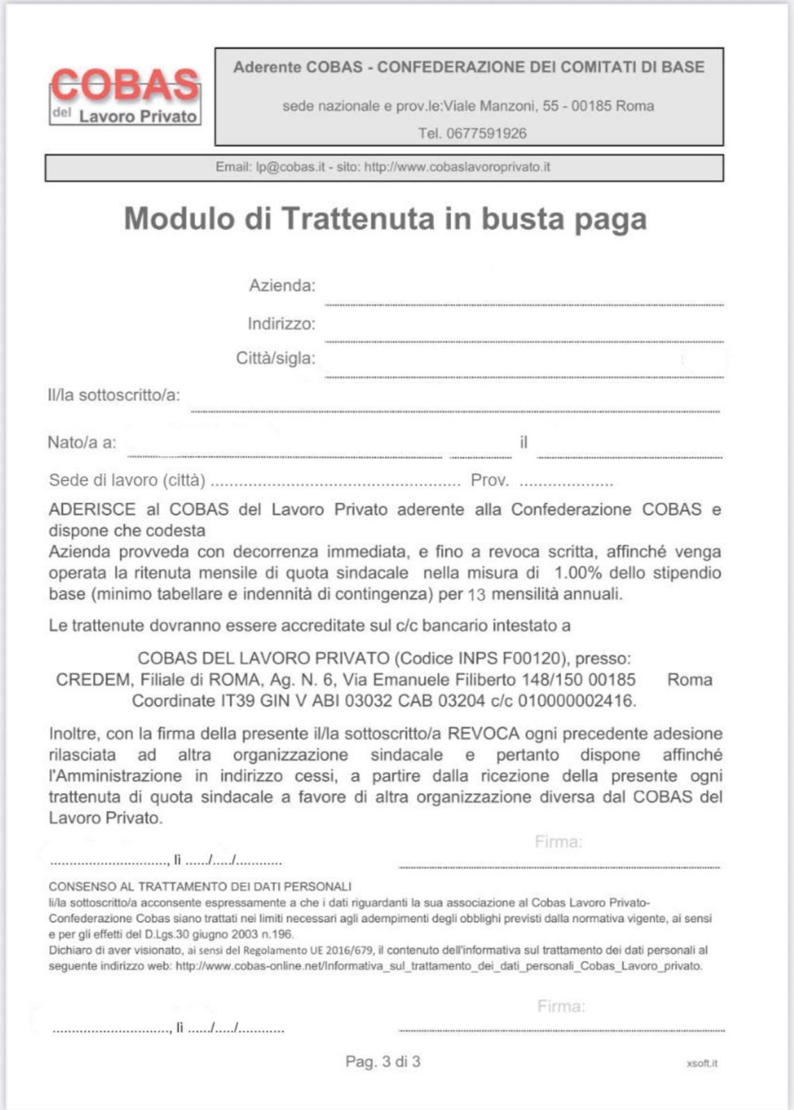 Scarica i moduli qui presenti, compilali, ed inviaceli per mail insieme all’ultima busta paga ed alle fotocopie fronte e retro della carta di identità e del codice fiscale